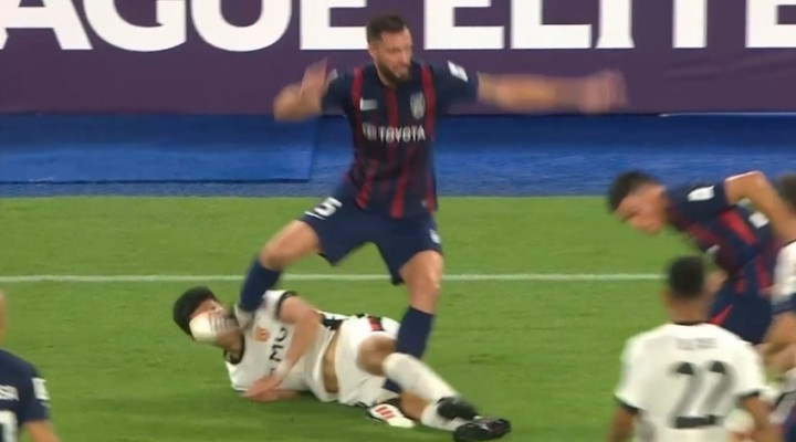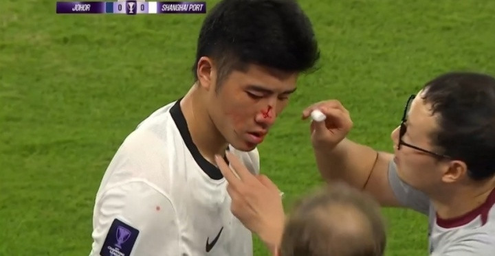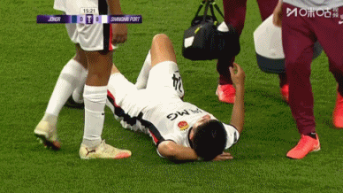 直播吧12月09日讯血染赛场!李圣龙被对方球员重重踢到面部,主裁没有出牌