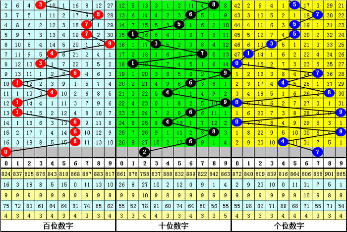 个位:上期奖号4为:小 号偶数,在连续7期开奖中,该位分别开出:4:小 号偶数、8:大号偶数、0:小 号偶数、9:大号奇数、0:小 号偶数、9:大号奇数、4:小 号偶数,其中大号出现较少,奇数相走势相对较冷,本期个位看好开出大号奇数出现。
