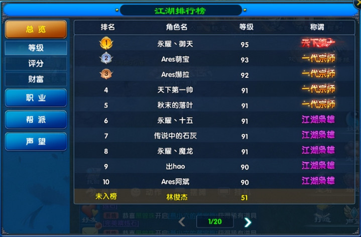 榜单重置:等级、战力、帮派榜全部清零,不管是萌新还是回归老玩家,只要敢拼就能上榜,让全服看见你的名字。